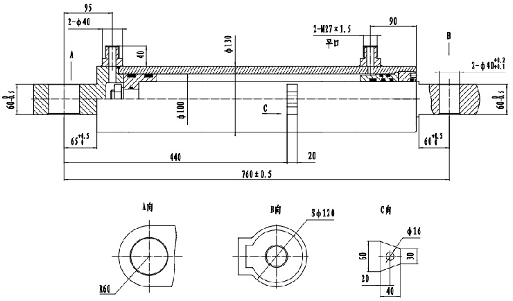 型号 | 缸徑(jìng)(mm) | 杆徑(mm) | 行程(mm) | 安裝距(jù)(mm) | 額定壓力(MPa) | 最大推(tuī)力(t) | 最小推力(t) |