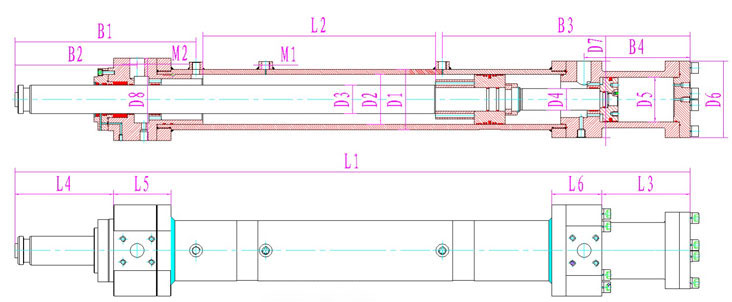 | 産品型号(hào) | 行程 | 安裝距(ju) | 額定壓力 | L1 | L2 | L3 | L4 | L5 | L6 | D1 | D2 | D3 | D4 | D5 | D6 | D7 | D8 | B1 | B2 | B3 | B4 | M1 | M2 |