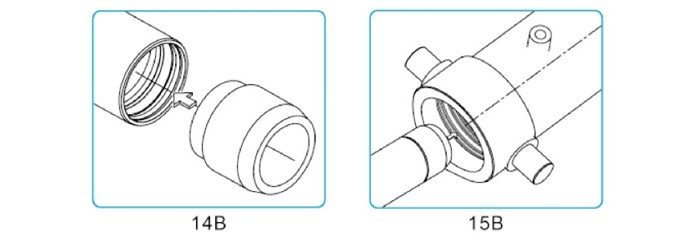 将(jiāng)一級缸(gāng)筒推入(ru)外缸筒(tǒng)中,借助(zhù)一級缸(gang)筒安裝(zhuang)導向套(tào)把缸筒(tǒng)裝到外(wài)缸筒裡(li),注意不(bú)要讓缸(gāng)筒刮到(dao)外缸筒(tǒng)導向部(bu)位,缸筒(tǒng)通過油(you)封套件(jian)時可能(neng)會遇到(dao)一些阻(zǔ)力。