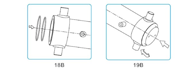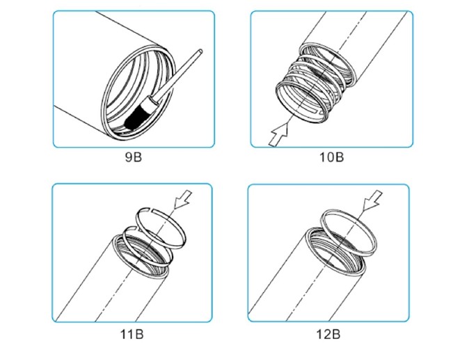 裝(zhuang)好一個(ge)缸筒後(hòu),将缸筒(tong)繼續向(xiàng)前推并(bing)将卡簧(huáng)裝入上(shang)一節缸(gāng)筒内壁(bì)上對應(yīng)的卡簧(huáng)